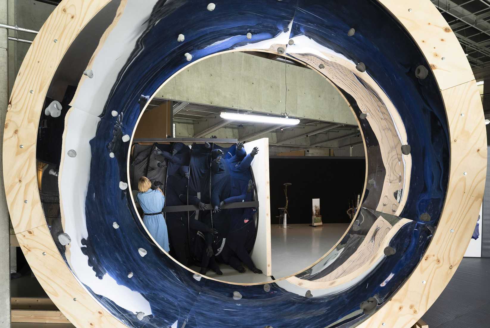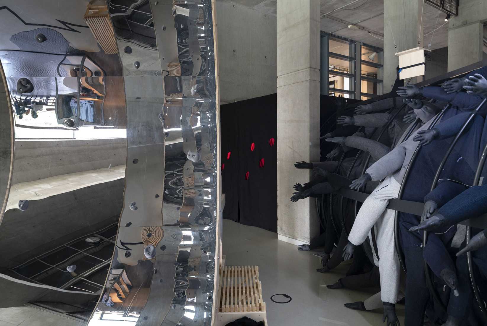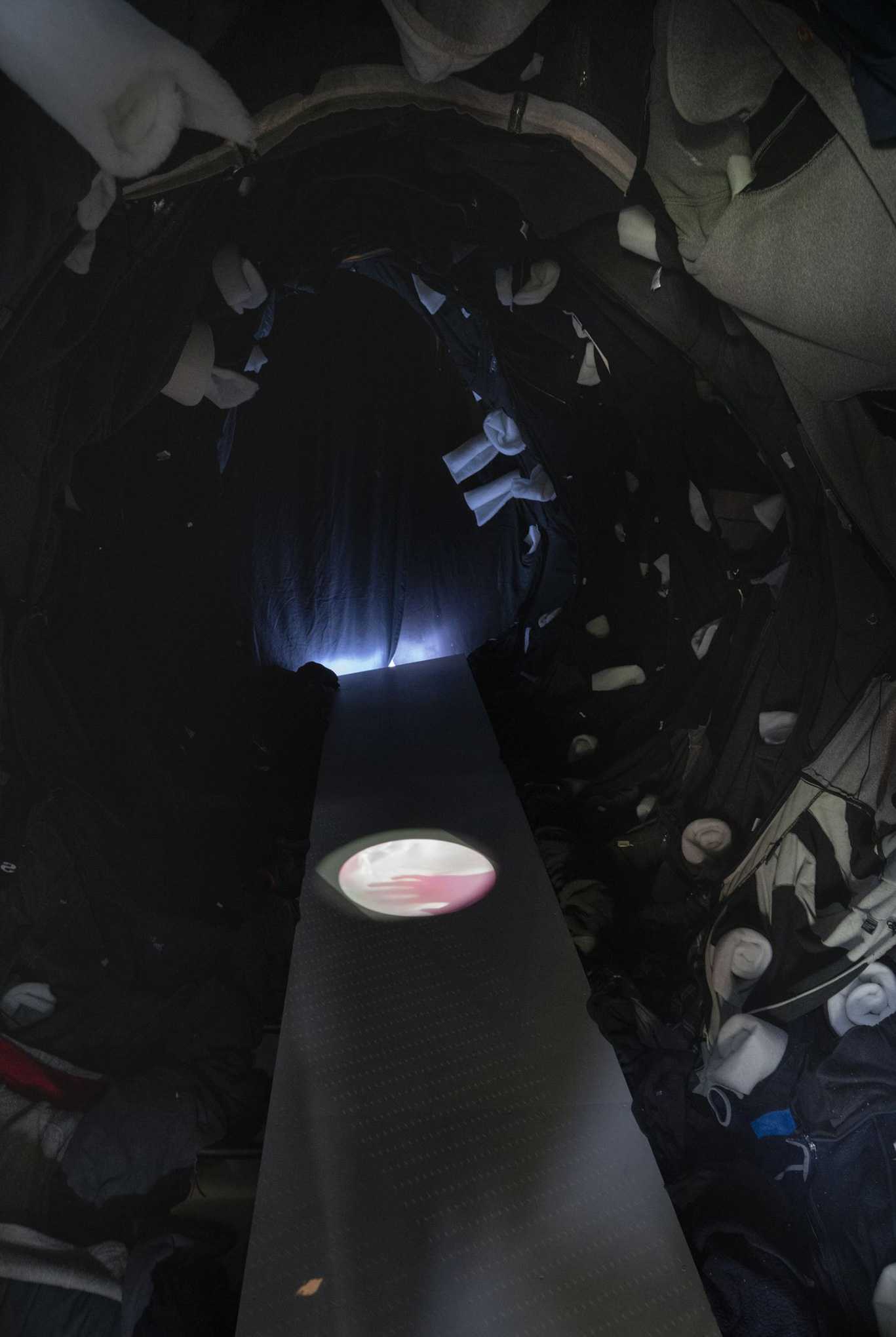The installation gives human visitors an ecstatic glimpse into their own extinction, one which lacks the apocalyptic anxiety and insistent doomsday rhetoric that has become commonplace in the Anthropocene discourse. Instead, human visitors to “Pandora’s Ecstasy” are summoned by a companion species from the future. As visitors listen to the unfolding of the myth, they are also encouraged to play among the interactive elements of the space, to employ their hands, arms, and legs, and join in the rituals that honor the sacrifices of the ancestors: humans.
